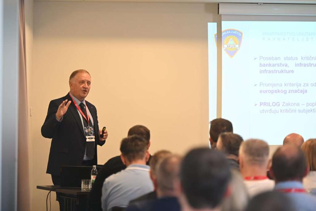 O Zakonu o kritičnoj infrastrukturi i ulozi privatne zaštite govorio je Dražen Štajduhar, načelnik Sektora za smanjenje rizika od katastrofa u Ravnateljstvu civilne zaštite MUP-a. Objasnio je kriterije za određivanje kritične infrastrukture, razmjenu informacija o sigurnosnim incidentima te novu ulogu zaštitarskog sektora u osiguravanju otpornosti ključnih sustava.