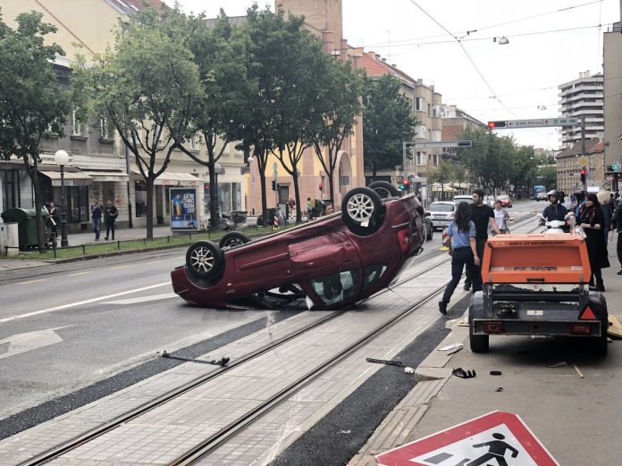 U Vlaškoj ulici došlo je do prometne nesreće, u kojoj se automobil prevrnuo na krov.