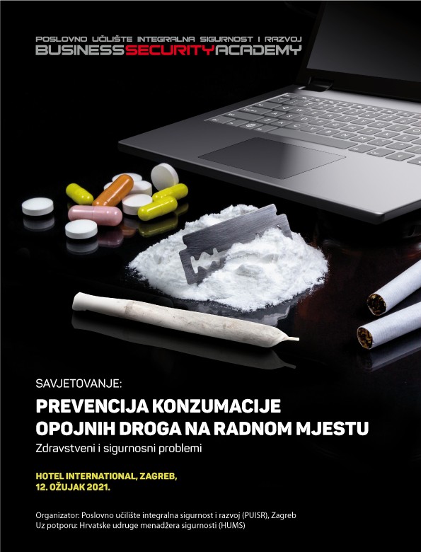 prvom savjetovanju: Prevencija konzumacije opojnih droga na radnom mjestu, hotel International, Zagreb, 12. ožujka 2021. u organizaciji Poslovnog učilišta integralna sigurnost i razvoj, Zagreb uz potporu Hrvatske udruge menadžera sigurnosti (HUMS).
