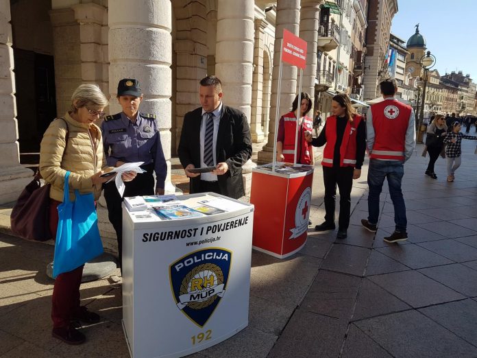 Na riječkom su Korzu, u srijedu, 18. listopada 2017. policijski službenik Odjela prevencije, Dario Tonković i policijska službenica iz Prve policijske postaje Rijeka, Antonija Ferenčak u suradnji s volonterima Društva Crvenog križa Primorsko goranske županije informirali građane o pojavnim oblicima trgovine ljudima te dijelili promidžbeno-edukativne materijale.